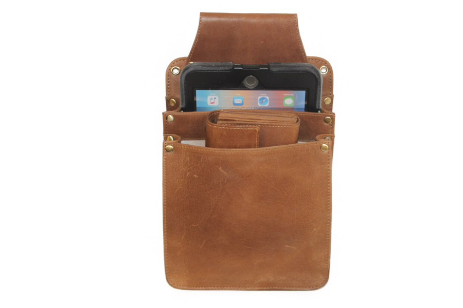HOLSTER FÜR IPAD MINI MIT BUMPER UND KELLNERBÖRSE, HUNTER LEDER
